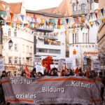 Bei der Abschlusskundgebung auf dem Marktplatz hat der Arbeitskreis kritische Soziale Arbeit klargestellt, dass gut finanzierte soziale Arbeit essentiell und kein „Platinstandard“ ist. Auch die KIT-Jugendhilfe war schon letztes Jahr von Haushaltskürzungen betroffen und hat wieder mit drohenden Kürzungen zu kämpfen, was schon jetzt die Arbeit vor Ort massiv belastet, wie sie in der letzten Rede betont haben.